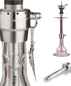 Die Edelstahl-Shisha ist eine Kombination aus stylischer Glasbowl, einer Edelstahl-Rauchsäule mit Holz-Element und modernem Closed-Chamber-System.