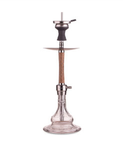 Die Edelstahl-Shisha ist eine Kombination aus stylischer Glasbowl, einer Edelstahl-Rauchsäule mit Holz-Element und modernem Closed-Chamber-System.