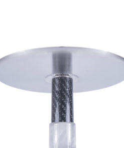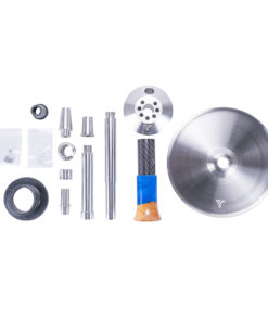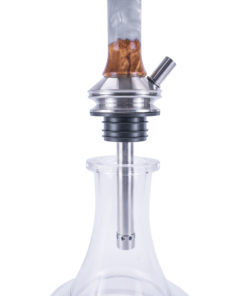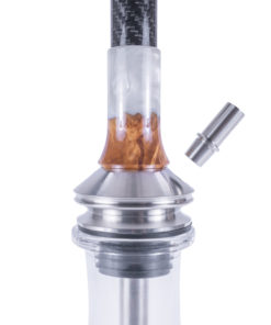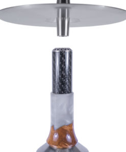 Die VYRO – Penta ist eine kleine (ca. 39 cm) kompakte Steck-Shisha aus V2A Edelstahl, echtem Carbon, Epoxidharz und Holz. Der Blow Off befindet sich unterhalb vom Shisha-Teller und sorgt für ein schnelles und angenehmes Entlüften. Der Shisha-Rauch prallt am Kohleteller ab und wird nach unten geleitet. Um dir einen schnellen Austausch deines Shisha-Kopfes zu ermöglichen, kann der Shisha-Teller bequem durch den Schliffadapter von der Rauchsäule entfernt werden. Zusätzlich kann z.B. ein Molassefänger (18/8 Schliff) integriert werden. Der geschliffene Kohleteller der VYRO – Penta hat am äußeren Rand eine kleine Erhöhung, damit die Kohle auf dem Shisha-Teller nicht herunterfallen kann. Durch die Erhöhung in der Mitte des Kohletellers kann die Kohle nicht an die Kopfdichtung gelangen, wodurch diese geschützt ist. Der Purge ist unter dem Shisha-Teller in dieser Erhöhung versteckt.